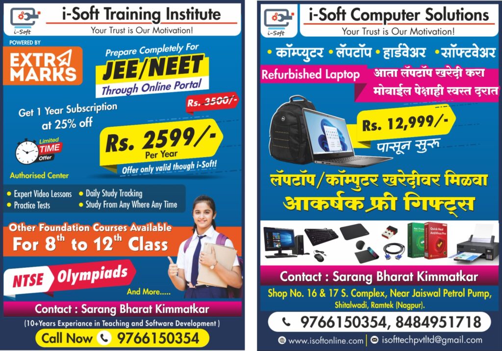 📍 स्थान: i-Soft Institute, समर्थ क्रीड़ा मैदान, रामटेक